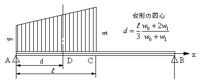 台形型分布荷重の図心の位置d