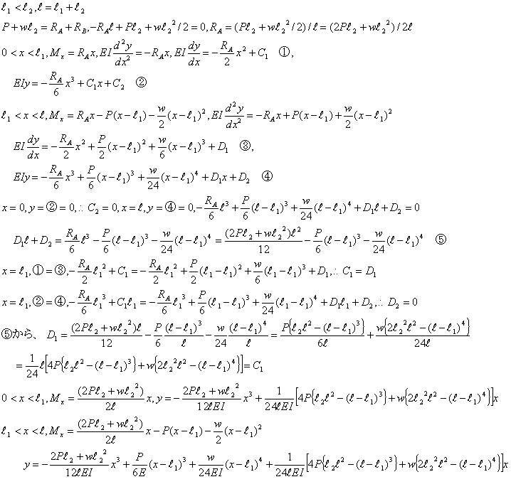 図の梁の場合に、曲げモーメントとたわみを求める。