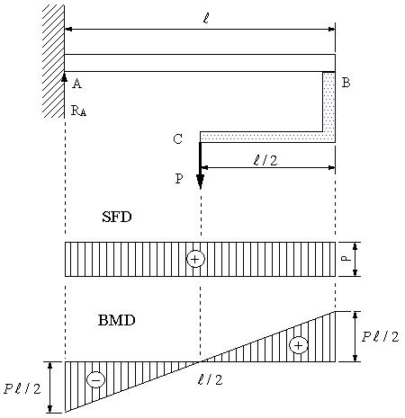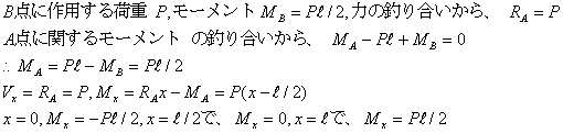 図の梁の場合に、せん断力、曲げモーメント、せん断力図、曲げモーメント図を求める。BC材は剛体とする。
