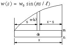 分布荷重が図のように、三角関数(sin関数)として変化する場合に、曲げモーメントとたわみ曲線、最大たわみを求める。分布荷重の最大値は図のようにwoとする。