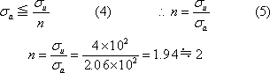 安全なための設計条件は、安全係数nとおくと、(4)式であり nは(5)式のように求められる。