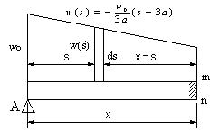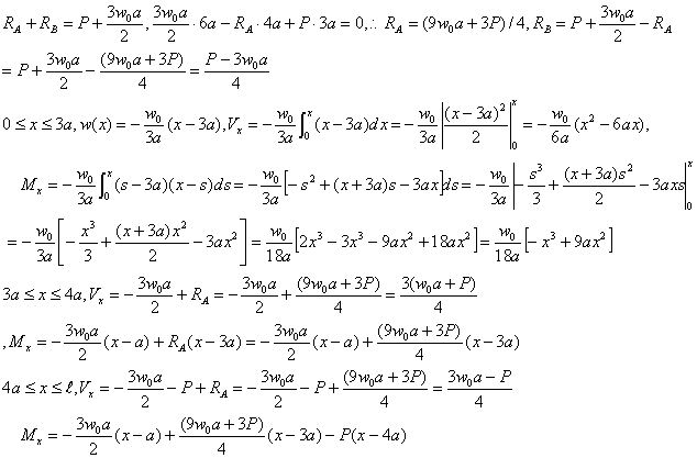 図の梁の場合に、支点の反力とせん断力、曲げモーメントを求める。