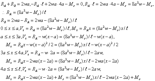 図の梁の場合に、支点の反力とせん断力、曲げモーメントを求める。
