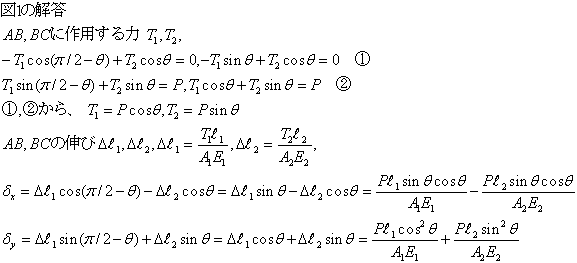 図1,図2の場合に、AB,BCの長さ、断面積、ヤング率をL
