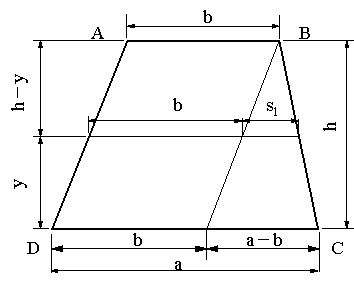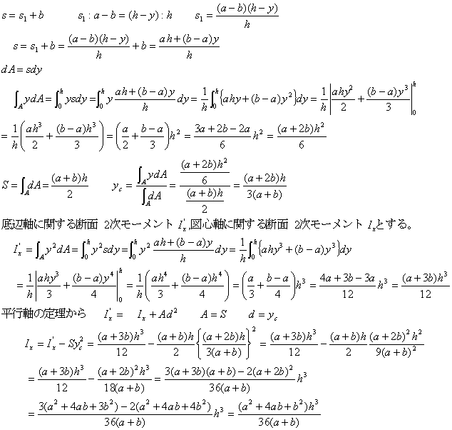 台形断面を持つはり図1の図心の位置と断面二次モーメントを求めよ。