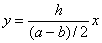 のx座標は、(a-b)/2, y座標はhから、中点を結んだ直線の式は、