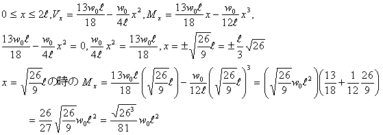 | *曲げモーメントの最大値が生ずる位置と値の計算 |