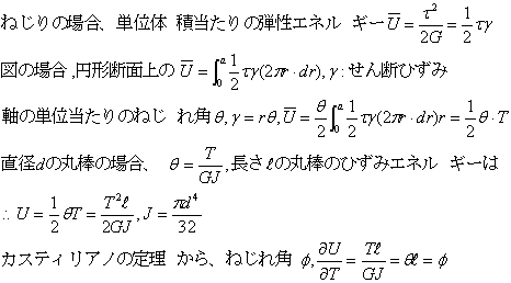 カスティリアノの定理によるねじりのひずみエネルギーの計算