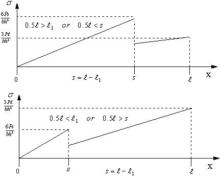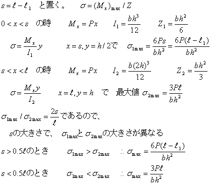 =2s/L ,sが0.5L,つまり、はりの半分の長さより大きいか小さいかで曲げ応力の最大値が変わってくる。