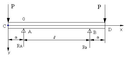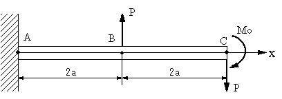 | 【問題119】 | 図の純粋曲げの場合、せん断力図、曲げモーメント図、たわみ曲線の式と、最大たわみを求める。 |