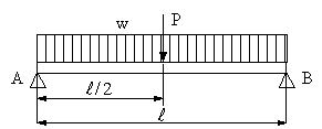 | 【問題143】 | 図の梁の場合に、せん断力、曲げモーメント、せん断力図、曲げモーメント図を求める。ただし、L=1m,w=300N/m,P=500Nである。 |