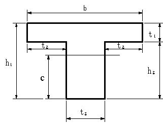 | 【問題154】 | 図の図心と、断面二次モーメント、断面係数を計算する。ただし、 b=60mm,t1=10mm,t2=20mm, h1=40mm,h2=30mmとする。 |