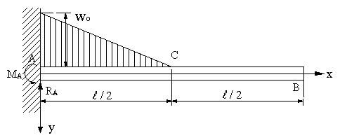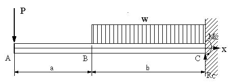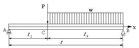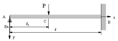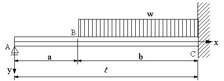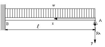 | 【問題167】 | 図の場合の梁において、A,B点における反力、A点におけるモーメントを求める。次に、たわみ曲線を求める。弾性係数E,断面二次モーメントIとする。 |
