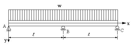 | 【問題160】 | 図の不静定梁の場合に、各支点における反力とたわみの式を求める。 |