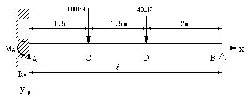 | 【問題198】 | 図の梁の場合に、せん断力と曲げモーメントを求める。 |