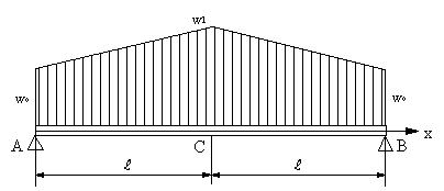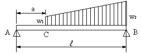 | 【問題181】 | 図のような分布荷重が作用する両端支持はりの場合に、せん断力、曲げモーメント、せん断力図、曲げモーメント図、最大応力を求める。断面係数はZとする。 |