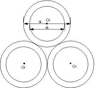 | 【問題186】 | 外径do,内径diの3本の中空軸を図のように接着した梁の場合の図心の位置と断面二次モーメントを計算する。 |