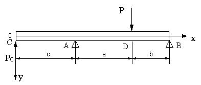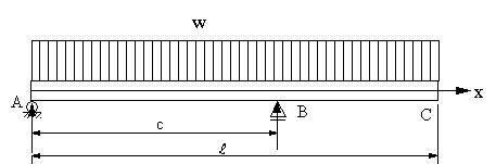 | 【問題192】 | 図の梁の場合に、AB部の曲げモーメントの最大値とBC部の曲げモーメントの最大値が同じくなるcの値を求め、その時のせん断力図と曲げモーメント図を求める。 | ||||||