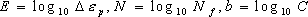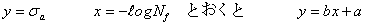 | E = - αN + b となり、直線の式となる。そこで、αとCを決定するために最小二乗法を適用する。 |
