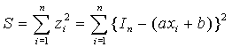| が得られる。 a, b の値は未知であるので、 a, bを変数として、誤差の二乗の和S |