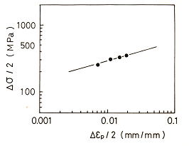 ![]() 図5 繰り返し応力−ひずみの関係 β=0.212 ,定数σo=92.9 ,SS400 |