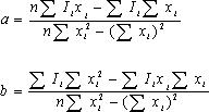 | a = 0.785が得られる。次にxの総和にaを掛けて、積をI の総和から引けば、差は8bになる。 |