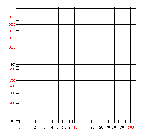 ![]() 両対数用紙目盛りの例 |