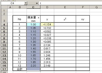 | Excel のマクロ処理、VBAを使いプログラムする方法がありますが、最小二乗法を煩雑に使う場合は便利かと思いますが、たまにしか使わない場合は上述の方法でよいかと思います。最新のExcelでは、統計関係の関数が準備されているようですが、私は、Windows2000かXPで、都合でOffice