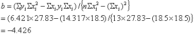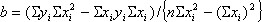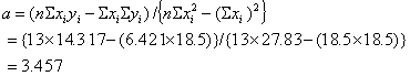 | n個のxi, yiから計算して xi, yi , xi2を求めて、xi, yi, xiyi , xi2 の和を求めます。 |