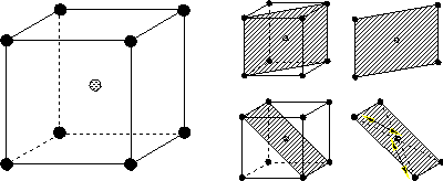 ![]() 付図C.2 面心立方格子(FCC)構造とすべり面、すべり方向 |