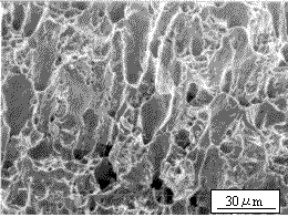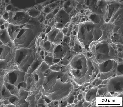 | 垂直破断面には図4.6の機構によりディンプルが成長する。せん断破面には、せん断変形により引き伸ばされたディンプルが観察されることがある。 | |||||||||