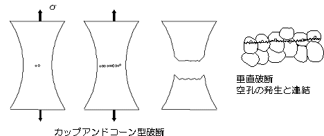 ![]() (c) カップアンドコーン型破壊 図4.3巨視的、微視的レベルでの破壊の様相 |