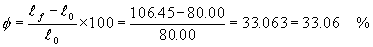 | 重力加速度,円周率などは,最小有効数字より1桁多くとって計算する。最終的に,最小有効数字桁数+1の値を四捨五入するからである。 【計算例3】 l0=80.00mm,lf=106.45mmのとき,伸びφを計算する。最小有効数字は4桁。 |
