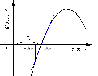 ![]() (d) 図(a),(b),(c)の関係 図4 2つの原子の間に生ずる復元力 |