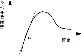 ![]() 図1 相互ポテンシャルエネルギー,相互作用力と原子間距離の関係 |