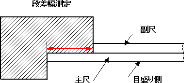 | ■ノギスによる測定 このノギスは外径を測定するジョウの部分、内径用のクチバシ、段差や穴の深さを測定するデプスバー、主尺と副尺の段差を利用した段差幅の測定の4種の測定が可能です。 |