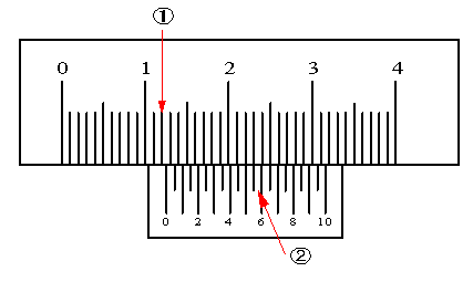 | ■ | ノギス等、副尺がついている場合 | |||||||||